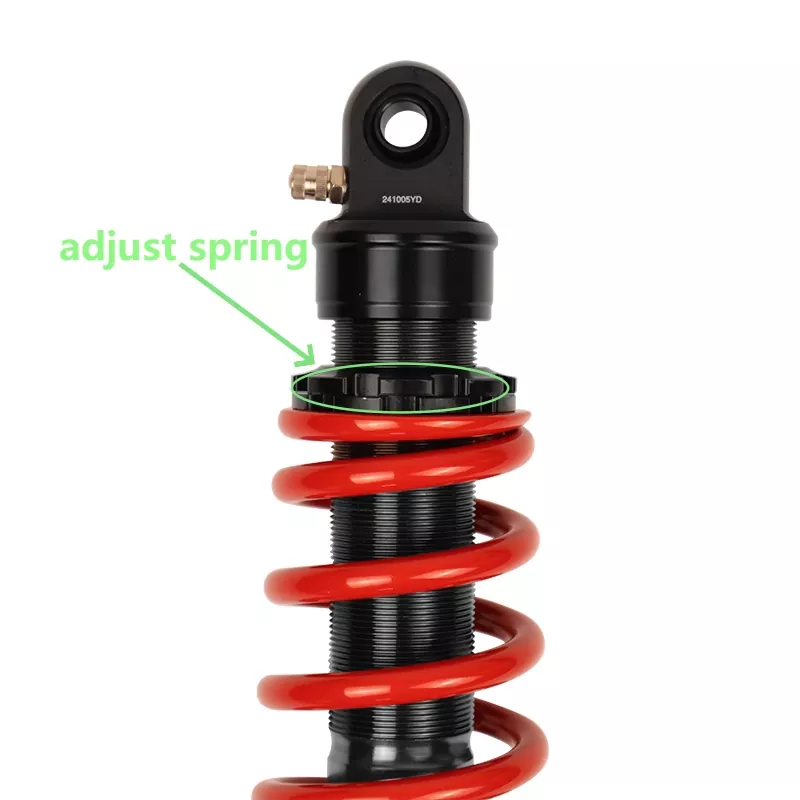 Амортизатор має регульоване попереднє натягування пружини, що дозволяє водіям змінювати, відрегулювати вниз, щоб зробити пружину жорсткішою, відрегулювати, щоб зробити пружину м’якшою